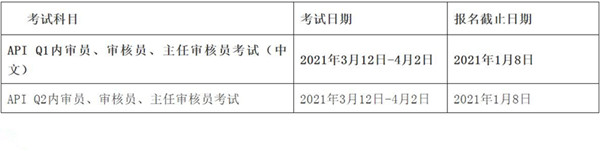 API 認(rèn)證審核員(中文)考試安排如下:
