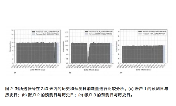 預(yù)測(cè)模型的主要目標(biāo)是利 用天氣數(shù)據(jù)準(zhǔn)確預(yù)測(cè)電力指標(biāo)。 這個(gè)問(wèn)題被表述為一個(gè)監(jiān) 督學(xué)習(xí)回歸任務(wù),目的是最小化 每個(gè)目標(biāo)變量的預(yù)測(cè)誤差。對(duì)模 型參數(shù)進(jìn)行了優(yōu)化,減小了預(yù)測(cè) 值 與 實(shí) 測(cè) 值 之 間 的 誤 差。 來(lái) 自 OpenWeatherMap API 的實(shí)時(shí) 天氣數(shù)據(jù)不斷輸入到模型中,使 其能夠動(dòng)態(tài)更新預(yù)報(bào),并提供準(zhǔn) 確和響應(yīng)性的能源預(yù)測(cè)。 這種預(yù)測(cè)機(jī)制支持提前 15 天 的每小時(shí)預(yù)測(cè)范圍,從而能夠及 時(shí)做出操作決策。 該模型通過(guò)使用歷史數(shù)據(jù)和 交叉驗(yàn)證的廣泛測(cè)試來(lái)驗(yàn)證,以 確保穩(wěn)健性和可靠性。圖 2 顯示 三個(gè)不同賬戶的歷史和預(yù)測(cè)的每 日電力消耗之間的比較。圖表顯 示,預(yù)測(cè)值與歷史數(shù)據(jù)密切相關(guān), 證明了該模型準(zhǔn)確預(yù)測(cè)消費(fèi)趨勢(shì) 的能力。該模型有效地處理不同 的消費(fèi)模式,保持跨不同帳戶的 高準(zhǔn)確性。
