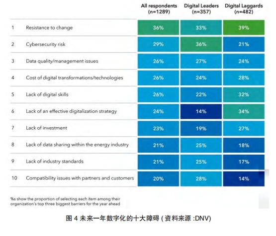 隨著能源行業(yè)應(yīng)對數(shù)字化和脫碳的雙重挑戰(zhàn),適應(yīng)和創(chuàng)新的能力將決定成功。DNV能源系統(tǒng)增長、創(chuàng)新和數(shù)字化總監(jiān)LucyCraig說:“DNV的調(diào)查確定了組織在利用數(shù)字技術(shù)的力量方面面臨的主要挑戰(zhàn),并強調(diào)了變革帶來的機遇。數(shù)字領(lǐng)導(dǎo)者通過將數(shù)字化嵌入其戰(zhàn)略核心、培養(yǎng)創(chuàng)新文化和投資正確的技術(shù)而脫穎而出。在接下來的一年里,這些組織將通過專注于進一步的數(shù)字化和網(wǎng)絡(luò)彈性來鞏固他們的進步并保持他們的優(yōu)勢。”