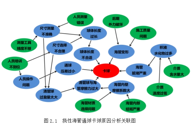 圖2.1 撓性海管通球卡球原因分析關(guān)聯(lián)圖