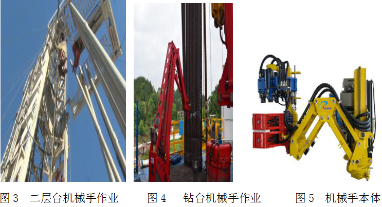 圖3 二層臺機(jī)械手作業(yè) 圖4 鉆臺機(jī)械手作業(yè) 圖5 機(jī)械手本體