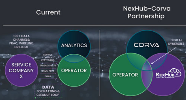 在開(kāi)創(chuàng)了對(duì)完井?dāng)?shù)據(jù)實(shí)施廣度和深度集合、標(biāo)準(zhǔn)化及維護(hù)質(zhì)量控制的新方法后,NexTier尋求提供一個(gè)在客戶層面可普遍使用的數(shù)據(jù)可視化平臺(tái),為了將該公司一流的NexHub數(shù)字基礎(chǔ)設(shè)施與一流的數(shù)據(jù)可視化平臺(tái)相結(jié)合,NexTier已與Corva(油氣實(shí)時(shí)數(shù)據(jù)和分析領(lǐng)域的新興領(lǐng)軍者,擁有一個(gè)基于云和100多個(gè)應(yīng)用的鉆完井平臺(tái))合作,Corva的鉆井分析可視化應(yīng)用已在全球多個(gè)超級(jí)石油巨頭,包括大型石油公司和獨(dú)立公司的數(shù)百部鉆井平臺(tái)上被廣泛采用。目標(biāo)是為完井領(lǐng)域建立一個(gè)類似的可視化平臺(tái),客戶和NexTier的工作人員都能在平臺(tái)上查看相同的數(shù)據(jù)流,評(píng)估和優(yōu)化相同的KPIs(Key performance indicators關(guān)鍵績(jī)效指標(biāo)),從相同的實(shí)時(shí)洞察中受益。