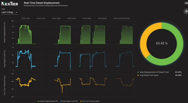 雙燃料壓裂隊(duì)能通過(guò)將天然氣納入燃料組合來(lái)取代大部分柴油消耗,這已被許多服務(wù)公司吹捧為一個(gè)輕松的勝利,也將自動(dòng)降低運(yùn)營(yíng)成本和提高ESG績(jī)效。然而,即使是評(píng)級(jí)最高的Tier 4雙燃料裝置也需要一個(gè)微妙的運(yùn)行參數(shù)的平衡,以提供最佳的柴油取代和減排、特定燃料混合物、泵速、刺激壓力和環(huán)境的績(jī)效標(biāo)準(zhǔn),提供由柴油取代的成本降低,以及降低排放。