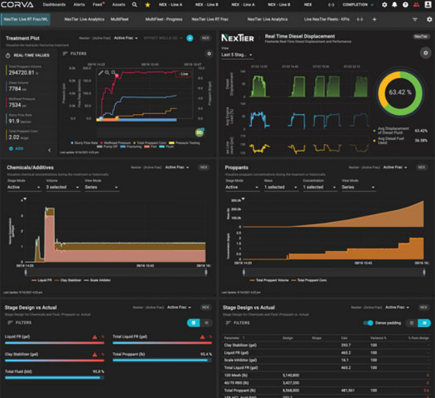 大約在NexHub數(shù)字中心組建的同時(shí),Corva推出了他的實(shí)時(shí)完井優(yōu)化平臺(tái),該平臺(tái)已演變成40多個(gè)離散分析法,涵蓋壓裂、測(cè)井和鉆塞。這些Apps(應(yīng)用程序)通過(guò)云端和一個(gè)本地移動(dòng)的蘋(píng)果和安卓設(shè)備的App提交,使完井團(tuán)隊(duì)能夠通過(guò)Web游覽器、智能手機(jī)或平板電腦即可開(kāi)始利用該技術(shù)。 Corva的完井優(yōu)化平臺(tái)與NexHub數(shù)字中心在2021年成為合作伙伴中接洽,將NexTier在完井作業(yè)和數(shù)據(jù)管理方面的廣泛血統(tǒng)與Corva豐富的數(shù)據(jù)可視化結(jié)合在一起。因此,每一個(gè)NexTier的壓裂客戶,無(wú)論大小,現(xiàn)在都前所未有的擁有了可訪問(wèn)一致的高質(zhì)量完井?dāng)?shù)據(jù)、自動(dòng)化增強(qiáng)功能、增加的工程專業(yè)知識(shí)以及更高開(kāi)發(fā)潛能的能力,以提高完井績(jī)效。