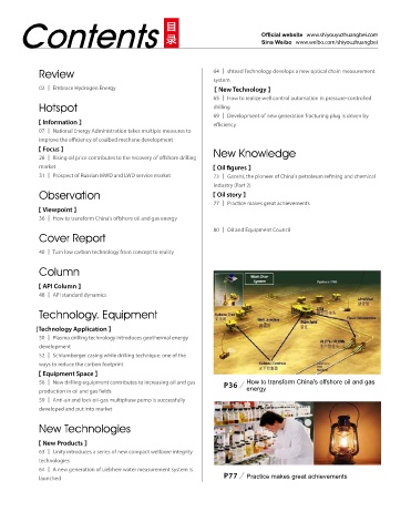 56 │ New drilling equipment contributes to increasing oil and gas P36 How to transform China's offshore oil and gas