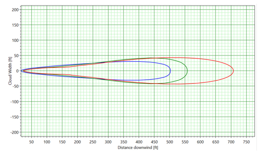 圖2. 最壞情況下水平釋放情景的隔離區(qū)評估示例。