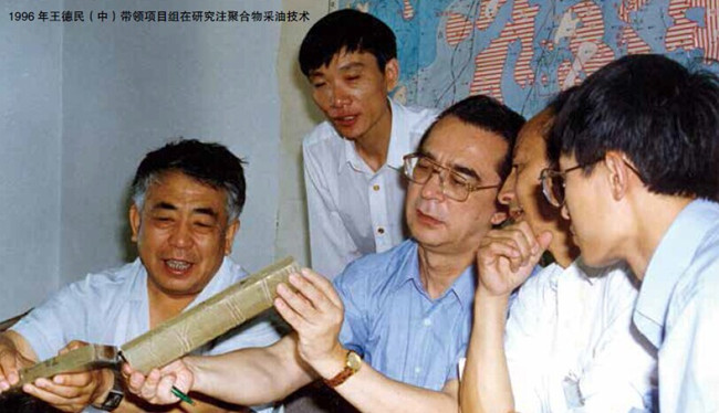 世界上任何油田都無(wú)法逃脫資源越采越少的結(jié)局,如何最大限度的提高采收率,是各國(guó)采油工程師竭力競(jìng)爭(zhēng)的焦點(diǎn)。1991 年開(kāi)始擔(dān)任大慶石油管理局副局長(zhǎng)的王德民,主管科技工作,他把三次采油當(dāng)中的注聚合物驅(qū)油提高采收率研究,確立為大慶油田在高含水后持續(xù)高產(chǎn)穩(wěn)產(chǎn)的主攻方向,領(lǐng)導(dǎo)全油田的科技力量未雨綢繆,展開(kāi)機(jī)理研究和礦場(chǎng)先導(dǎo)性工業(yè)應(yīng)用試驗(yàn)。王德民不僅是這一國(guó)家級(jí)重大科研項(xiàng)目的提出者和組織者,也是親自從事實(shí)驗(yàn)研究的實(shí)踐者,他率領(lǐng)科研團(tuán)隊(duì)在篩選適合大慶油田油藏特征的聚合物過(guò)程中發(fā)現(xiàn)了粘彈性能夠提高微觀驅(qū)油效率的機(jī)理,并應(yīng)用這一理論上的新認(rèn)識(shí)成功地解開(kāi)了注聚地面流程劇烈震動(dòng),井下抽油桿嚴(yán)重偏磨等一系列工程方面的難題,為注聚合物驅(qū)油轉(zhuǎn)入礦場(chǎng)工業(yè)化推廣開(kāi)辟了降低成本、簡(jiǎn)單易行的技術(shù)途徑。
