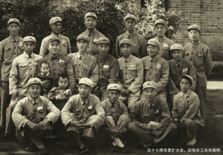 扎根大慶勞心血亙古蒼茫的荒原上,什么物質(zhì)條件都不具備。風(fēng)狂雪暴,宋振明和石油職工穿著高腰氈靴,腿都要凍僵了。不久,他所在的探區(qū)被編為第三探區(qū)。他仍任指揮。有時(shí)幾日之內(nèi),會(huì)戰(zhàn)隊(duì)伍就上幾千人,吃的不足, 有的隊(duì)伍還沒(méi)有住的帳篷。宋振明急了。他讓負(fù)責(zé)行政工作的劉文明到安達(dá)縣去,找石油部來(lái)的唐克司長(zhǎng)求援。人家說(shuō)你要什么?劉文明說(shuō)什么都要,要鍋要碗要水壺暖瓶雨衣雨鞋,還要帳篷。唐克也為難,像擠牙膏似的給點(diǎn),于大事無(wú)濟(jì)。時(shí)間不長(zhǎng)余秋里來(lái)了,沒(méi)有桌子凳子辦公開(kāi)會(huì),宋振明又讓劉文明去搞幾個(gè)桌凳來(lái)。吃的喝的五十七師黨委擴(kuò)大會(huì),后排右三為宋振明75困難,宋振明就親自跑到油田外的一個(gè)部隊(duì),說(shuō)我們來(lái)了個(gè)部長(zhǎng),沒(méi)有肉,糧食也不夠吃,求你們幫幫忙吧 ! 很多隊(duì)伍沒(méi)糧沒(méi)水,要靠自己解決。