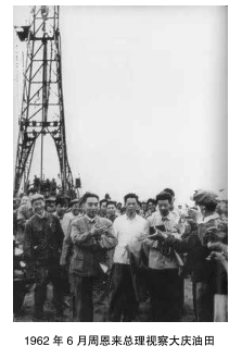 周恩來總理曾經(jīng)在1962,、1963、1966年三次到過大慶油田,每一次都有王進(jìn)喜陪同視察鉆井生產(chǎn)。周恩來總理對(duì)王進(jìn)喜不只是熟悉,可以說是寄托厚望的信任型友誼。王進(jìn)喜每次到北京出席盛大會(huì)議,日理萬(wàn)機(jī)的周總理總要抽點(diǎn)時(shí)間與他聊一聊,除了問一些油田生產(chǎn)情況之外,就是勉勵(lì)他引領(lǐng)鉆工趕超世界王牌鉆井隊(duì),為國(guó)家為民族爭(zhēng)口氣。