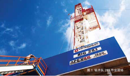 圖 1 展 現(xiàn) 了 鉆 井 隊(duì) 283 正 在 使用 一 部 Patterson-UTI 能 源 公 司 的APEX XK 1500 可行走式鉆機(jī)。該鉆機(jī)正在俄克拉荷馬州的 Grade County地區(qū)進(jìn)行鉆井作業(yè),Patterson-UTI公司注意到行走式鉆機(jī)的需求在不斷增加,去年建造的 20 部 APEX 鉆機(jī) 19部配備了行走系統(tǒng)。