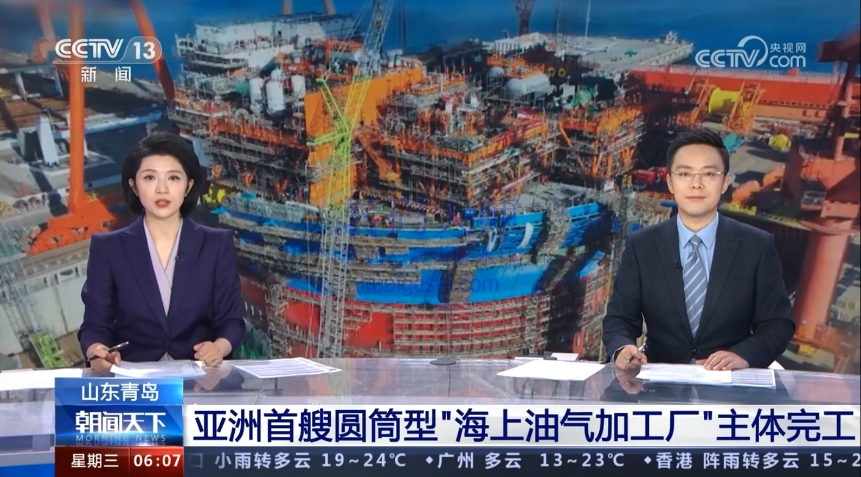 亞洲首艘圓筒型海上油氣加工廠主體完工