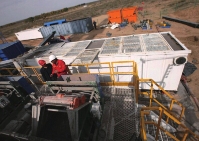 北 美 Woodford 頁 巖 開 發(fā) 期 間,鉆井作業(yè)使用油基泥漿,清除 巖屑過程中巖屑粘帶著大量泥漿, 累積粘帶的體積量是個不小的數 目,損失的泥漿導致成本過高且不 斷增長,石油公司在尋求一種能管 控此項成本的有效方法。此前,石 油公司使用了一套巖屑脫漿處理 裝置,這套裝置包括一個移動式的 巖 屑 烘 干 機 和 一 個 離 心 機, 為 了 便 于 運 輸 而 烘 干 這 些 巖 屑, 一 口 12,500ft(3,810m) 深 的 井 每 鉆 1ft(0.3048m)需投入 $8.50 美元 的油基泥漿成本。