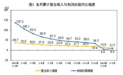 總體來看,一季度減稅降費、助企紓困多措并舉,工業(yè)企業(yè)利潤保持平穩(wěn)增長。但也要看到,外部輸入性通脹壓力加大,新冠肺炎疫情多點散發(fā),給工業(yè)經(jīng)濟平穩(wěn)發(fā)展帶來諸多挑戰(zhàn),企業(yè)生產(chǎn)經(jīng)營困難增多。一季度,規(guī)模以上工業(yè)企業(yè)利潤增速比上年四季度回落3.8個百分點,并且不同行業(yè)、不同類型企業(yè)間利潤分化明顯;工業(yè)企業(yè)營業(yè)收入增長放緩,工業(yè)產(chǎn)銷銜接水平下降,企業(yè)庫存高位運行,中小企業(yè)成本壓力仍然較大。