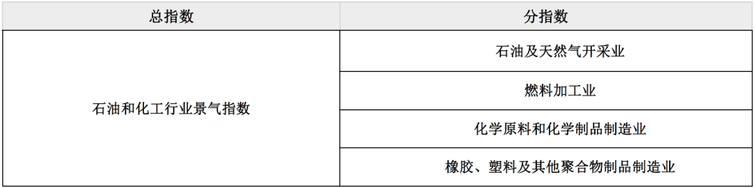 石油和化工行業(yè)景氣指數(shù)由中國(guó)石油和化學(xué)工業(yè)聯(lián)合會(huì)與山東卓創(chuàng)資訊股份有限公司聯(lián)合編制,是石油化工行業(yè)的微觀景氣循環(huán)監(jiān)控指標(biāo),包括“石油和天然氣開(kāi)采業(yè)景氣指數(shù)”“燃料加工業(yè)景氣指數(shù)”“化學(xué)原料和化學(xué)制品制造業(yè)景氣指數(shù)”“橡膠、塑料及其他聚合物制品制造業(yè)”四個(gè)分指數(shù)。石油和化工行業(yè)景氣指數(shù)的景氣指標(biāo)選擇以度量行業(yè)的潛在產(chǎn)出和經(jīng)濟(jì)效益為標(biāo)準(zhǔn),包括生產(chǎn)類微觀數(shù)據(jù)和行業(yè)效益類數(shù)據(jù),生產(chǎn)類微觀數(shù)據(jù)包括:產(chǎn)能利用率、產(chǎn)品盈利能力、產(chǎn)成品庫(kù)存水平?;A(chǔ)數(shù)據(jù)來(lái)源于與千余家企業(yè)建立的定期調(diào)研評(píng)估結(jié)果。