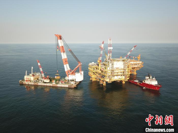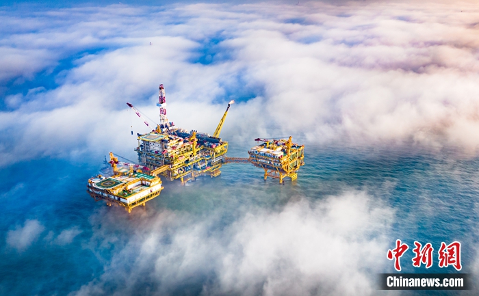 圖為中國海上首座智能油田:秦皇島32-6油田俯瞰圖。 中國海油天津分公司供圖