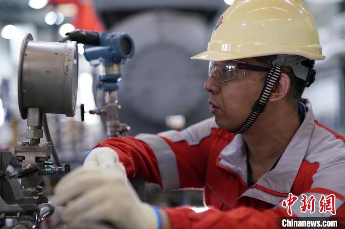 秦皇島32-6油田CEPI平臺總監(jiān)孫昊正在檢查設(shè)備。中國海油天津分公司供圖
