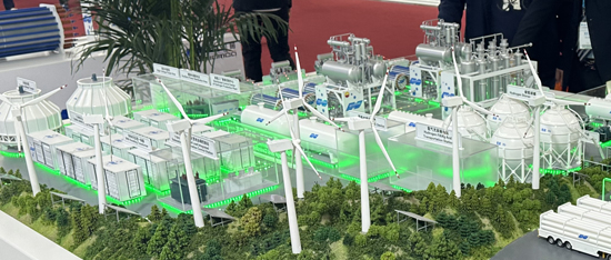 | 寶石機(jī)械推出的氫能制儲(chǔ)輸用一體化解決方案沙盤。 |
