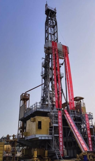 高質(zhì)量發(fā)展貫徹綠色發(fā)展理念,就要節(jié)能減排降低能耗。目前, 我國海上油氣田基本上還不能做到隨著工況變化,增減用電負(fù)荷,實(shí)時(shí)自動啟停發(fā)電機(jī),使機(jī)組實(shí)時(shí)處于最優(yōu)化運(yùn)行狀態(tài),因而, 不能做到降低能耗,減少碳排放。最近, 四川東方宏華集團(tuán)公司研發(fā)出一種“儲能及能量管理系統(tǒng)” 軟件,將它用在他們生產(chǎn)的首臺智能鉆機(jī)(見圖3)上, 節(jié)能減排成效顯著。他們采用該軟件,能夠智能識別鉆井工況,并采用內(nèi)置策略算法,求得該工況時(shí)的合理用電負(fù)荷,指令發(fā)電機(jī)實(shí)時(shí)按照合理負(fù)荷運(yùn)行, 從而 避免了“大馬拉小車” 現(xiàn)象,提升了系統(tǒng)暫態(tài)性能,提高了發(fā)電機(jī)效率,減少了發(fā)電機(jī)運(yùn)行時(shí)間,降低了碳排放約90%,實(shí)現(xiàn)了節(jié)能減排降低能耗。因此, 應(yīng)進(jìn)一步開發(fā)此軟件, 使其不僅能用于鉆機(jī), 還能用于海上油氣田的所有電驅(qū)動裝備上, 促進(jìn)全面實(shí)現(xiàn)節(jié)能減排降低能耗,助力高質(zhì)量發(fā)展。