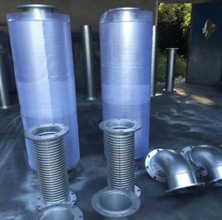 海洋平臺上噪音常高達(dá)80-90分貝(人們正常講話時(shí)的音量是40到60分貝),嚴(yán)重影響人們身體健康,也是高質(zhì)量發(fā)展中需要解決的一個(gè)問題。生產(chǎn)平臺上的火炬系統(tǒng)是一個(gè)主要噪音源, 可以使用FLARESIM軟件,對其不同工況時(shí)的音量進(jìn)行分析, 然后據(jù)之提出優(yōu)化火炬系統(tǒng)的類型、泄放量及高度的設(shè)計(jì)方案, 降低噪音。平臺結(jié)構(gòu)本身的振動噪音也是一個(gè)噪音源, 同樣需要根據(jù)實(shí)際測量數(shù)據(jù),提出平臺結(jié)構(gòu)的優(yōu)化設(shè)計(jì),來降低噪音。平臺上的機(jī)電設(shè)備,應(yīng)通過裝設(shè)消聲器降低噪音。四川東方宏華公司在鉆機(jī)系統(tǒng)裝設(shè)消聲器之后, 鉆機(jī)井場邊界處噪聲降低到不大于55分貝,成效顯著, 值得借鑒。圖5為-發(fā)電機(jī)組用的消聲器。