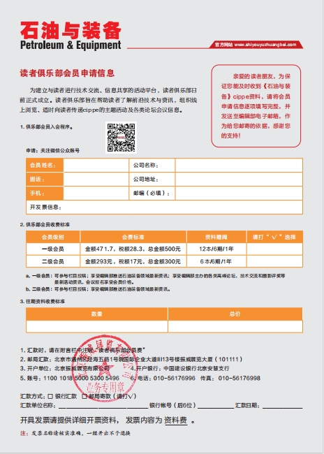 2025年《石油與裝備》征訂開始了!歡迎廣大讀者朋友們繼續(xù)訂閱!訂閱電話010-50917049;廣告合作010-50815753;